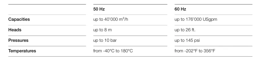 - Efficiency: They are efficient for high flow rates and low-pressure applications, such as in irrigation systems, cooling water systems, or large-scale water transport.